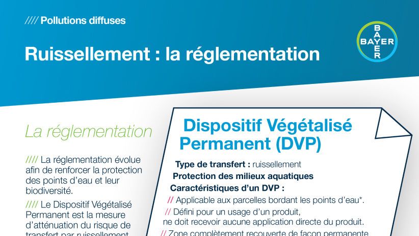 Les mentions ZNT (zone non traitée) aquatique ou DVP (dispositif végétalisé permanent) dans les phrases SPe3 précisent, entre autres, comment bien utiliser le produit pour limiter les risques de transfert vers les milieux aquatiques. Elles sont attribuées à chaque produit selon ses caractéristiques, et figurent sur l’étiquette du produit.